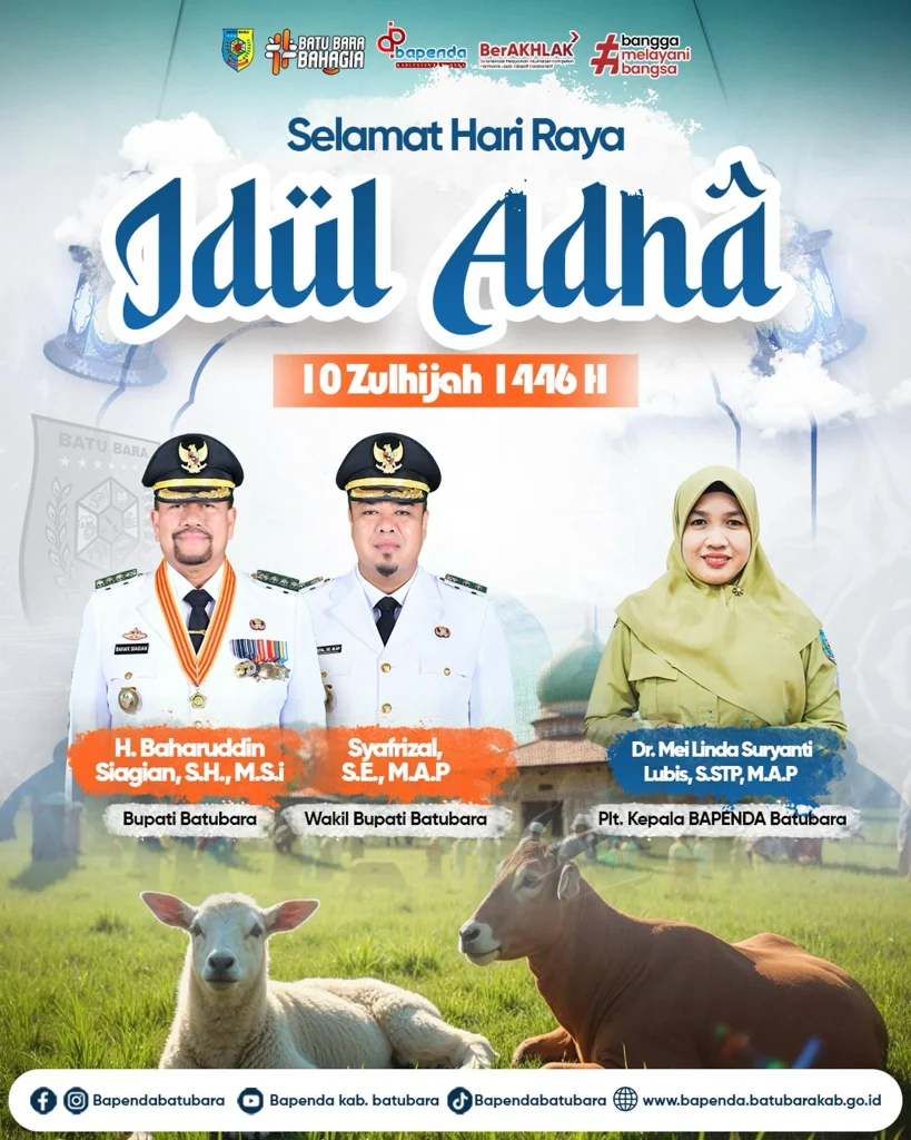 “Atas nama keluarga besar Bapenda Kabupaten Batu Bara, kami mengucapkan Selamat Hari Raya Idul Adha 1446 H. Semoga semangat kurban menjadi pengingat bagi kita semua untuk terus berbagi, peduli, dan mempererat tali persaudaraan dalam kehidupan bermasyarakat,” ujar Plt. Kepala Bapenda Batu Bara, Dr. Mei Linda Suryanti Lubis, S.STP, M.AP dalam pernyataan resminya.
